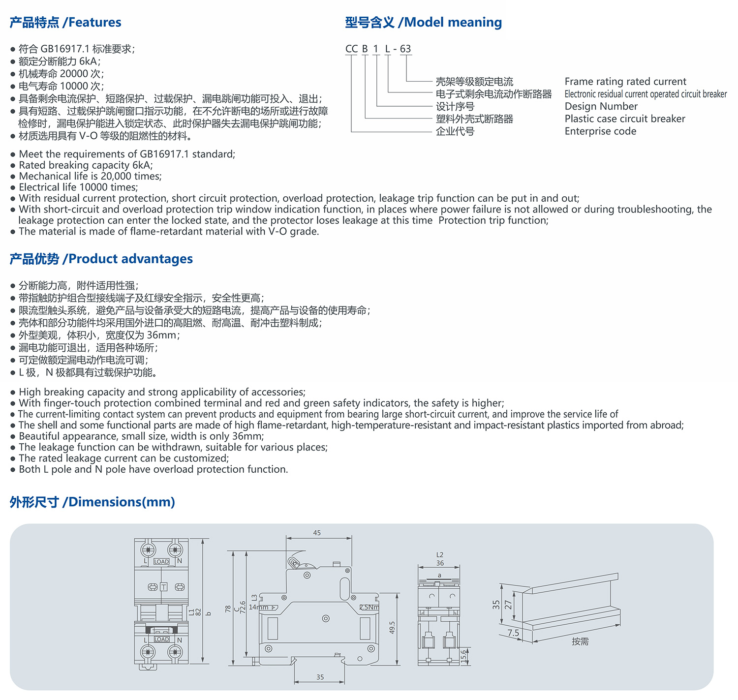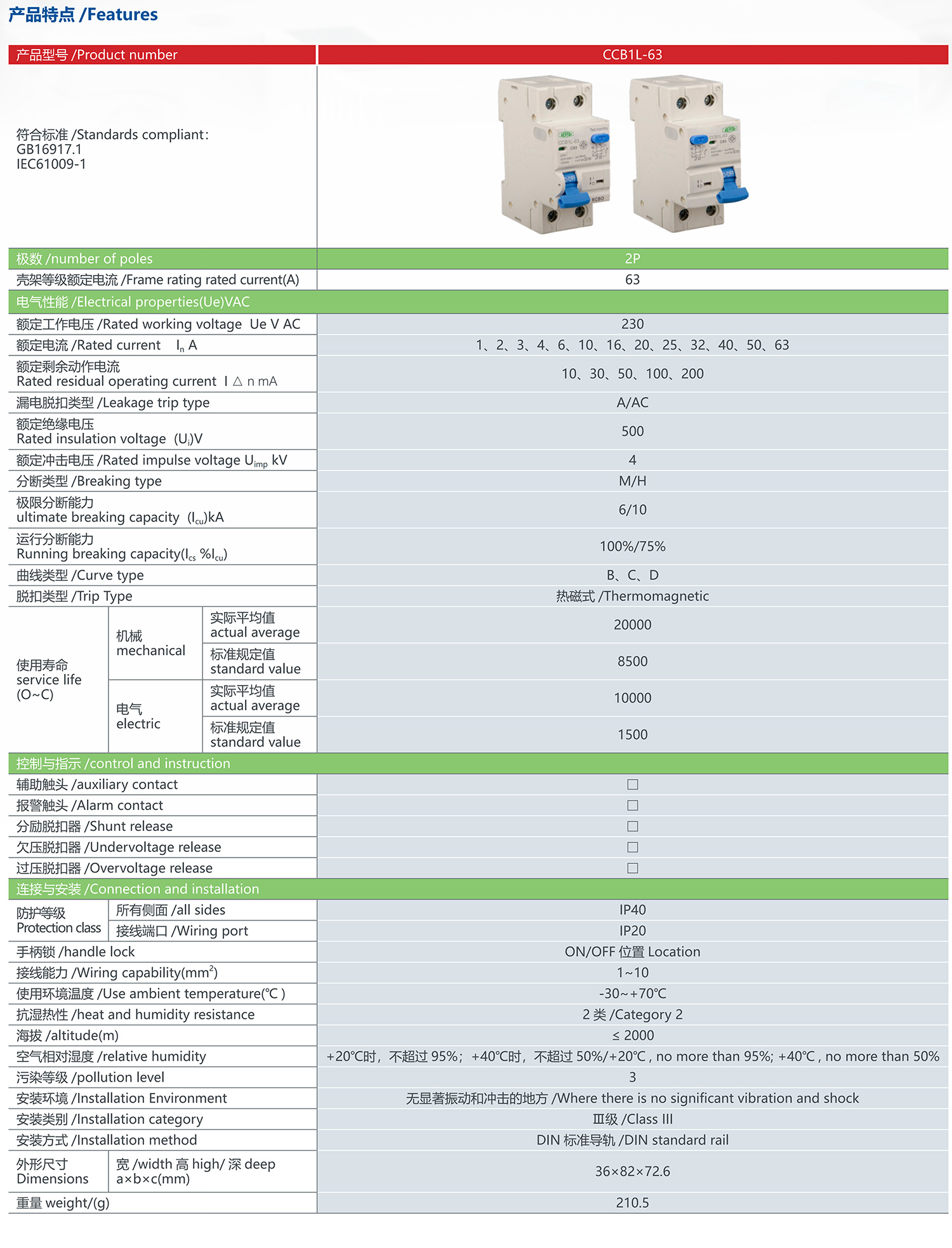 CCB1L-63 leakage circuit breaker