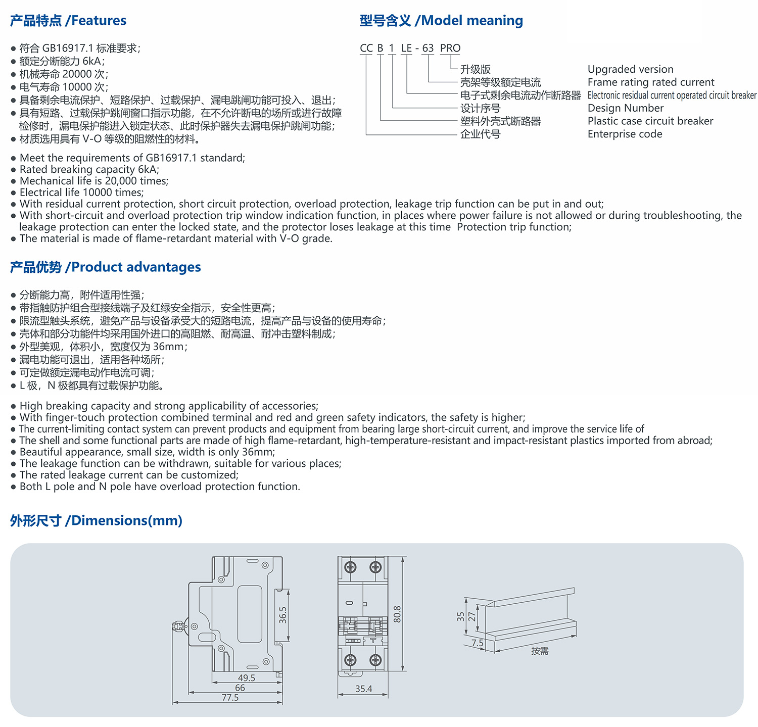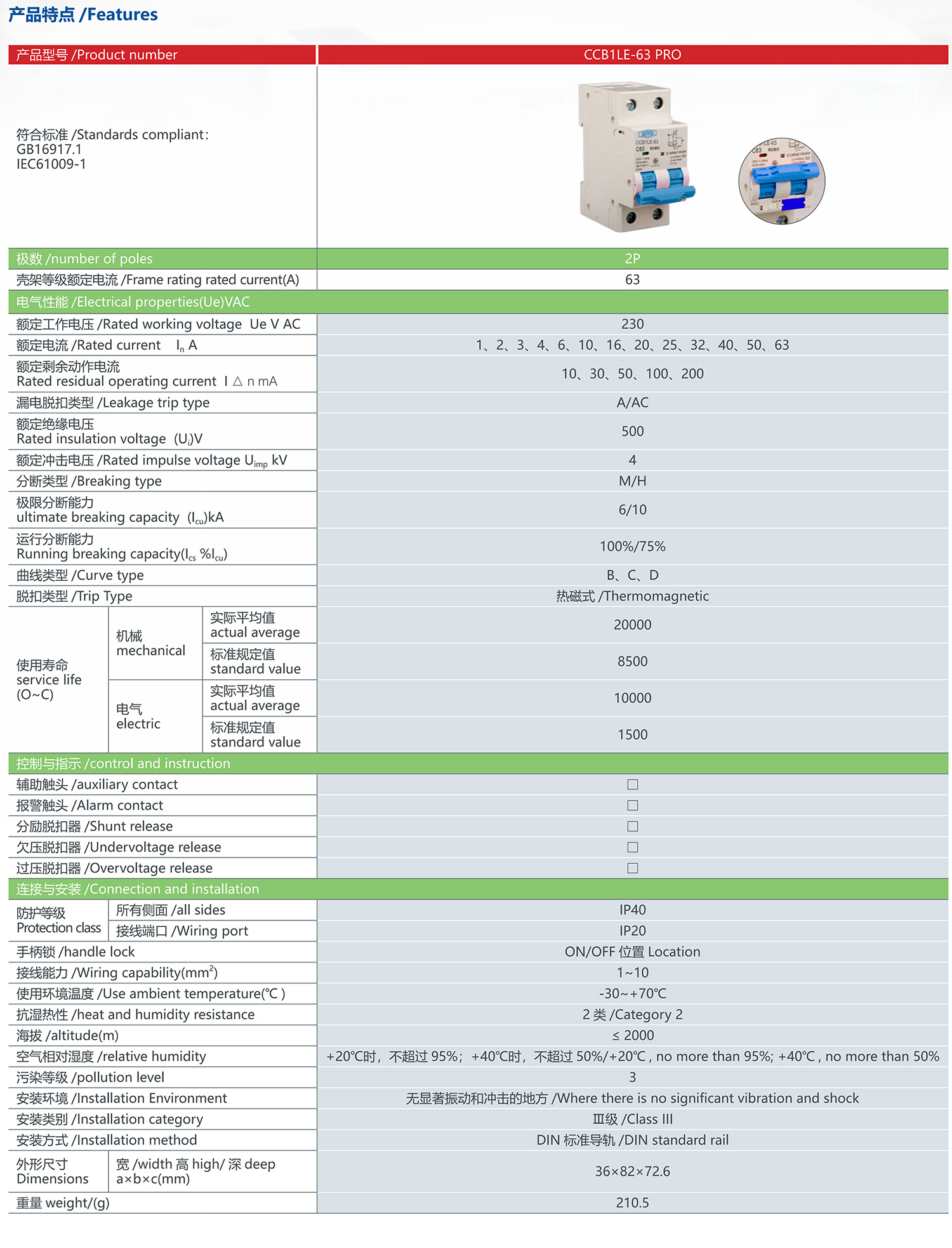 CCB1LE-63 PRO leakage circuit breaker