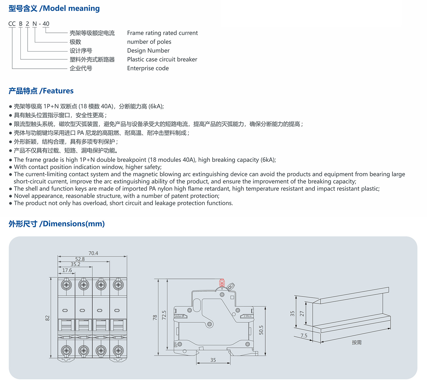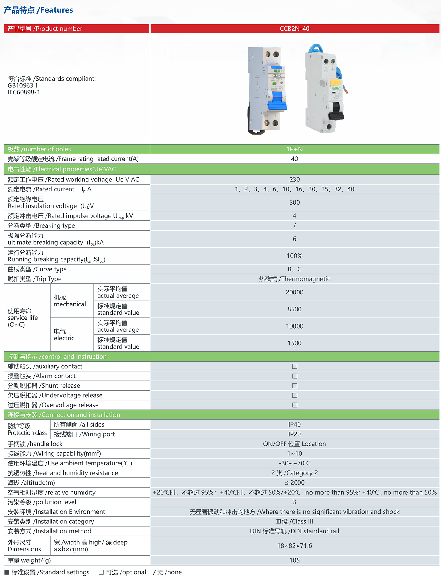 CCB2N-40 small leakage circuit breaker